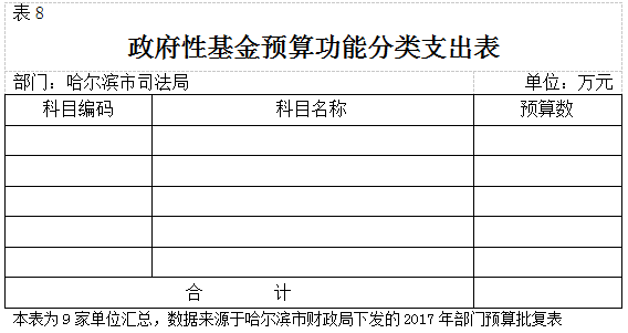 四、教育支出:反映政府教育事务支出,主要为哈尔滨市政法干警学校事务支出。